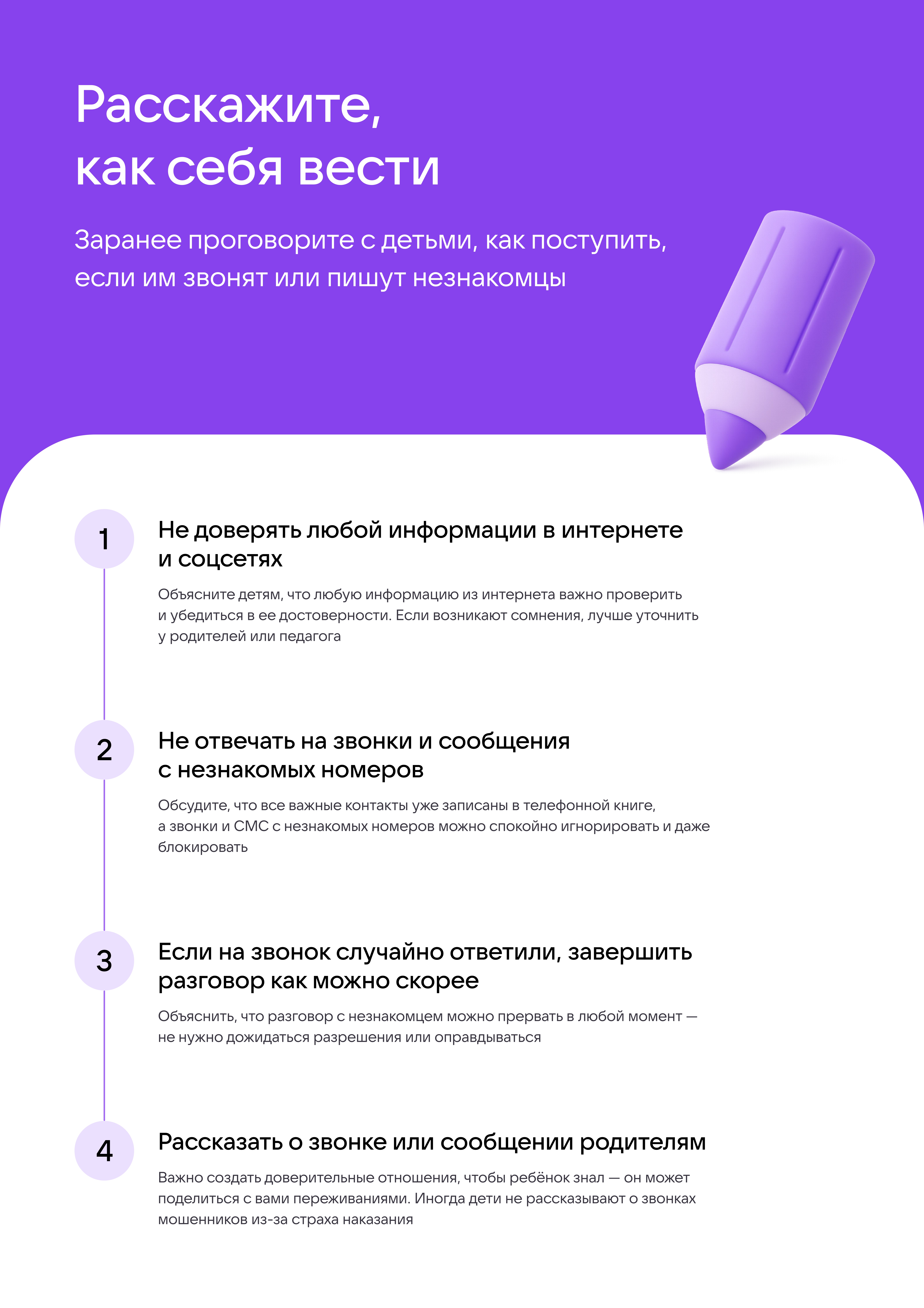 - Давай свой номер мобильного телефона только людям, которых ты знаешь и кому доверяешь.